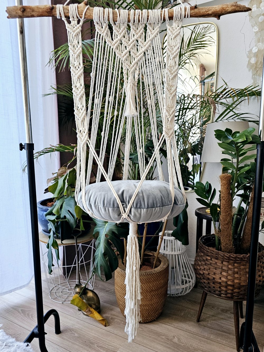 Zum Verkauf steht eine liebevoll handgefertigte Katzenschaukel im Boho-Stil, perfekt für Katzenliebhaber, die ihren Vierbeinern einen gemütlichen Rückzugsort bieten möchten.