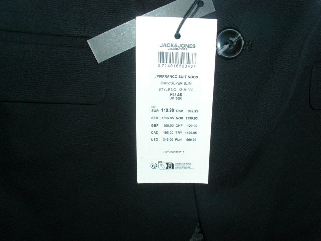 Biete hier einen Business-Anzug von Jack & Jones in Größe 46 an. Er ist schwarz und super slim. Das Sakko ist einreihig, mit zwei Pattentaschen und einer Brusttasche. Innen befinden sich mehrere kleine Taschen.