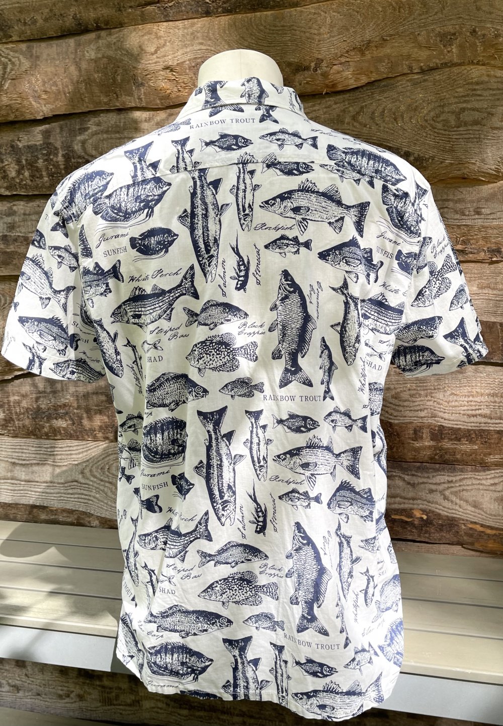 Kurzarmhemd mit Angeln / Fische Muster von H&M in Größe L.