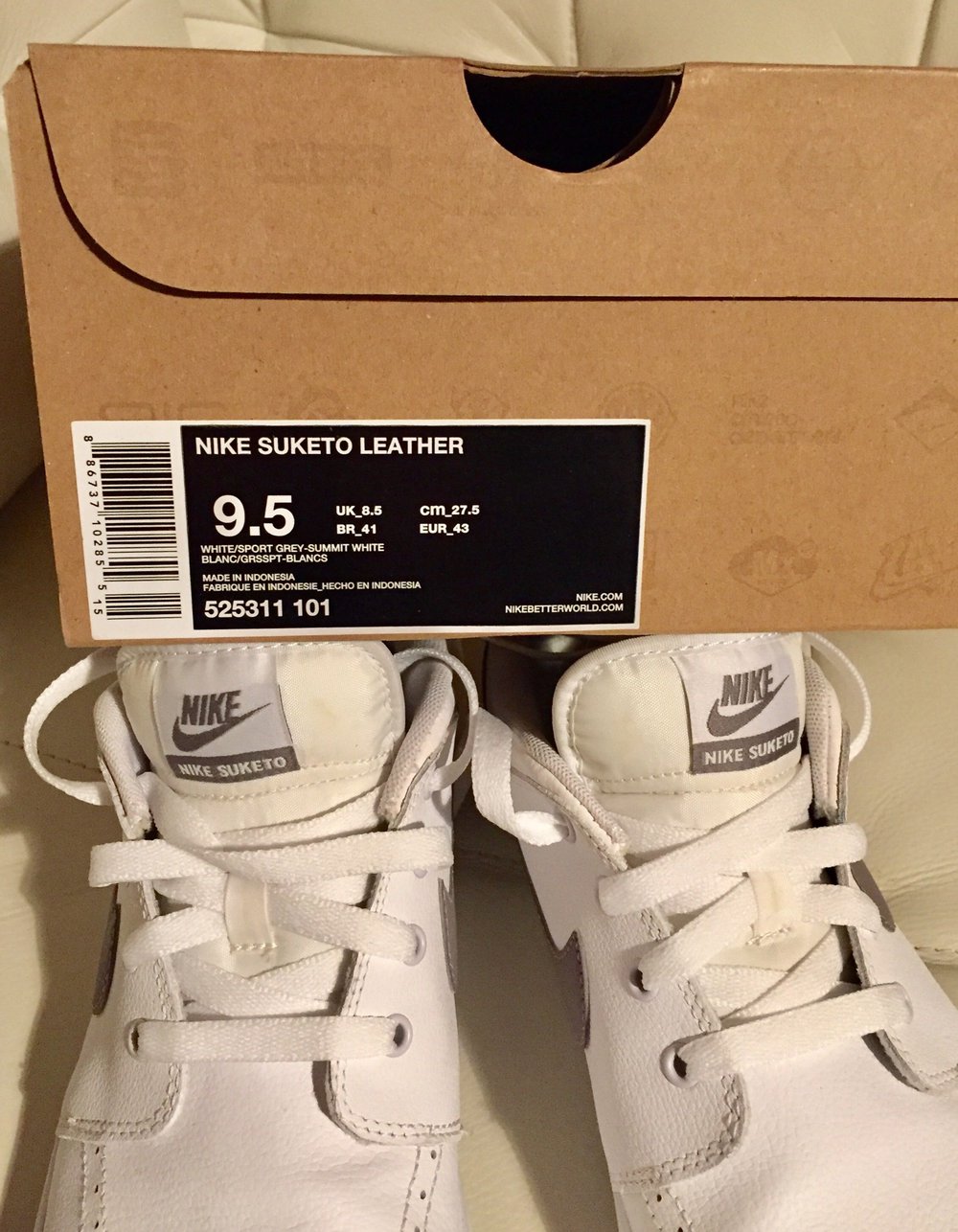 Weiße Nike Suketo Leder Sneaker in Größe 43 (UK 8,5).nnDie Schuhe haben keine nennenswerten Gebrauchsspuren, sie wurden 2 x indoor getragen.nSiehe diverse Fotos, sie sind Teil der Artikelbeschreibung.