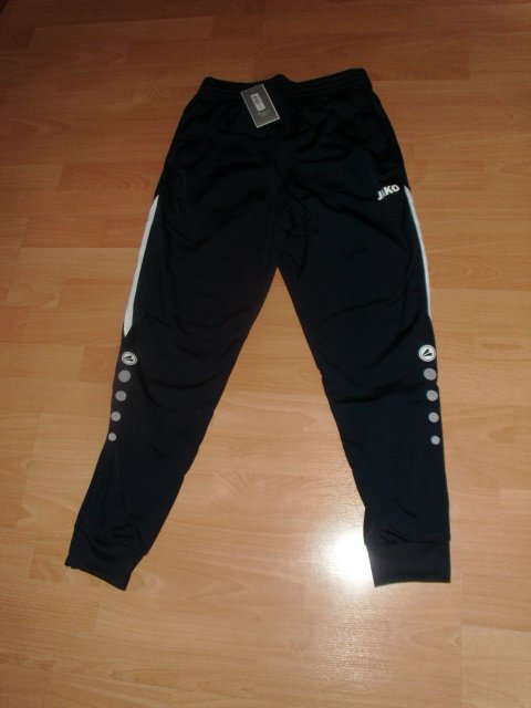 Biete hier eine lange Sporthose von Jako in Größe S an. Sie ist navyblau mit etwas weiß abgesetzt. Die Hose hat einen breiteren elastischen Hosenbund mit innenliegendem Zugband. Die beiden Seitentaschen sind mit Reißverschlüssen versehen. Die Beinenden haben kleine Bündchen und sie sind mit einem Reißverschluss versehen. Die Hose ist neu, ungetragen und original verpackt. Sie wurde nur zum Fotografieren heraus genommen.