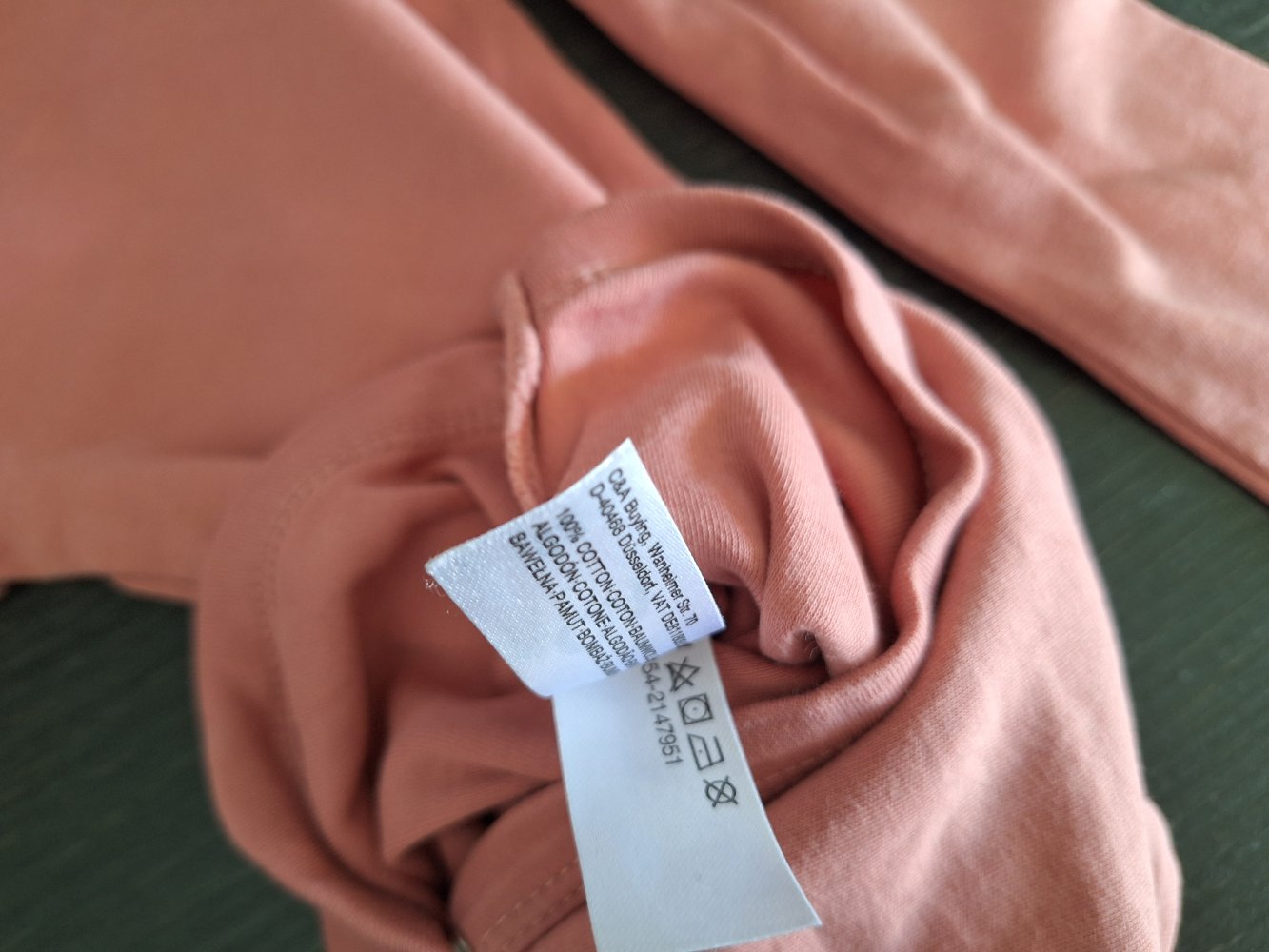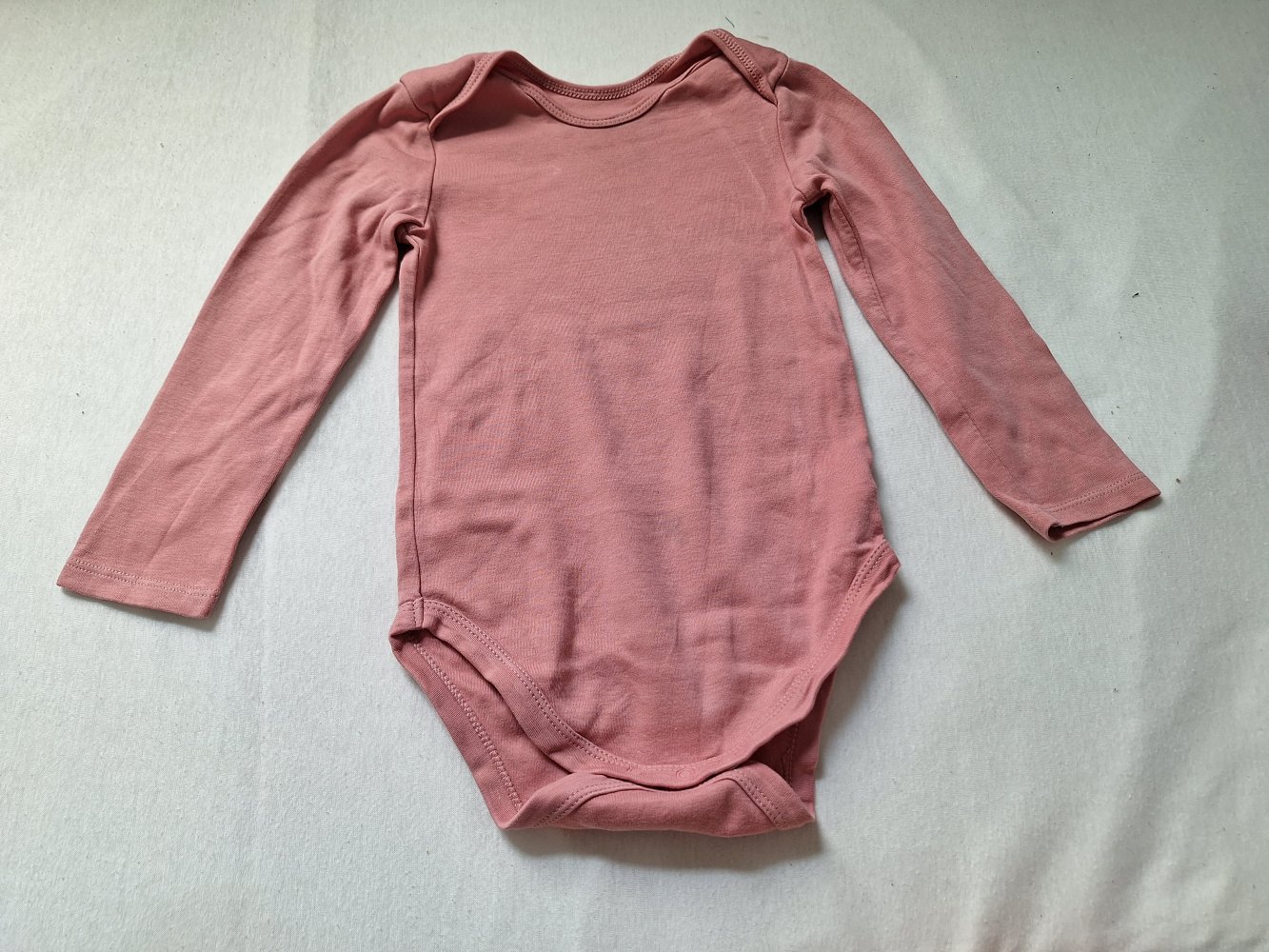 Lachsfarbener Langarm Babybody mit dehnbarem amerikanischen Ausschnitt aus 100 % Baumwolle, Gr. 92.