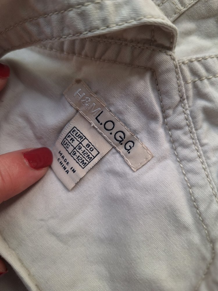 Schöne cremefarbene Latzhose von L.O.G.G., Gr. 80. Mit Knöpfen unten zum unkomplizierten Wickeln.
