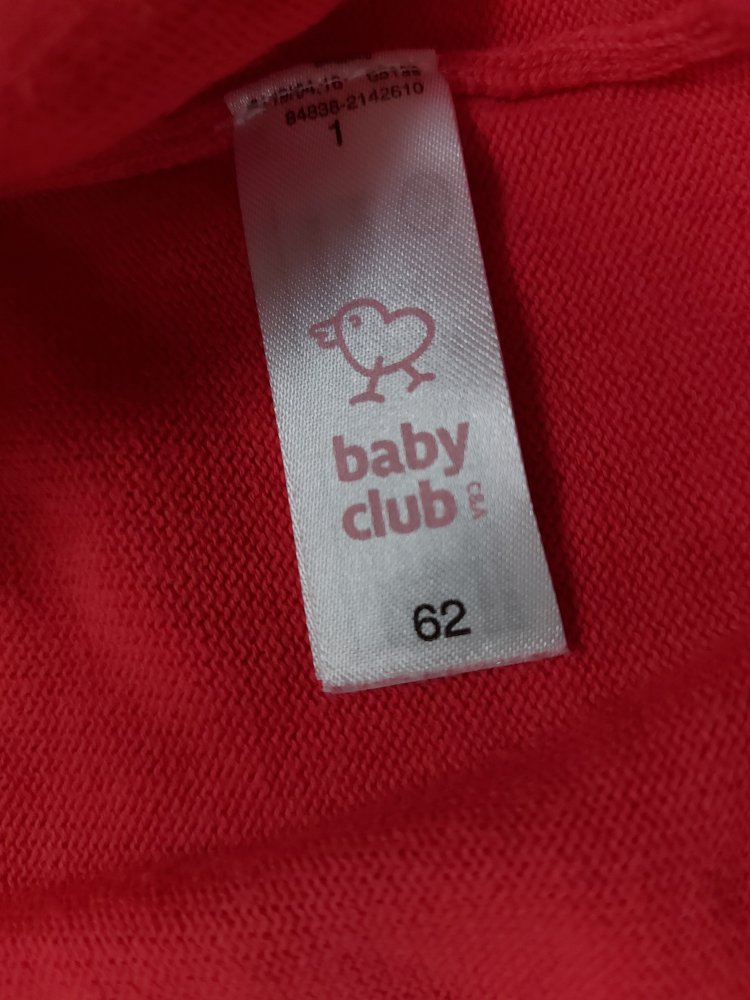 Superniedliche rote Strickjacke mit kleinem weißen Blümchen aus 100 % Baumwolle, Gr. 62.