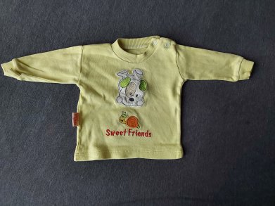 zitronengelber Babypullover Sweet friends mit Hund und Schnecke