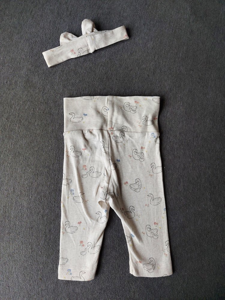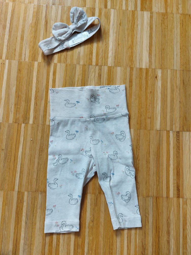 Supersüßes cremefarbenes Babyset bestehend aus Hose und Haarschleifchen in Gr. 62 mit süßem Schwanen-Print. Neuwertiger Zustand.