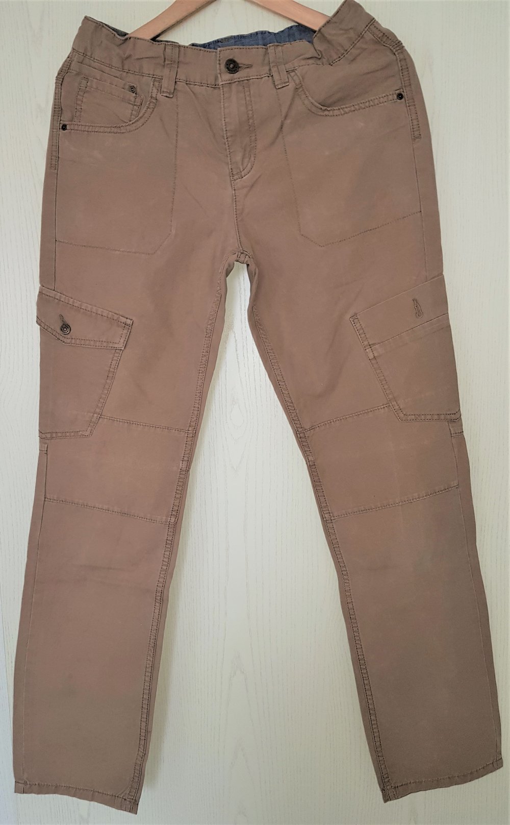 Sie wurde getragen und hat normale Waschspuren. Flecken und Löcher sind nicht vorhanden. Weite durch Innenbund verstellbar.