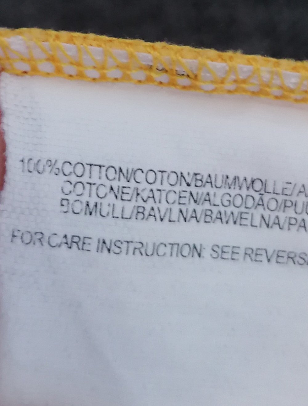 Farbe: senfgelb, Größe: 80, eher 74, da eng geschnitten, Knöpfe am Kragen, Aufdruck