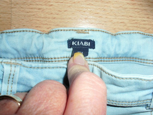 Die zweite Jeans ist eine 7/8 Jeans von Kiabi in Gr. 140 / 146 ( angegeben mit 10 Jahre). Diese Jeans ist ebenfalls hellblau und besteht aus einem Baumwollgemisch mit Elasthan. Innen im Bund befindet sich ein verstellbarer Gummizug, Gürtelschlaufen sind auch vorhanden. Vorn und hinten mit jeweils zwei Taschen.