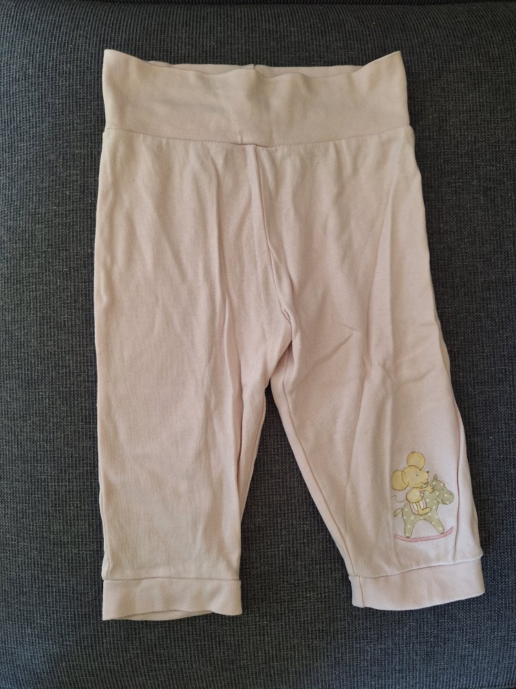 Bequeme rosa Hose mit süßer kleinen Maus und breitem Bund, Gr. 74/80 aus 100 % Baumwolle.