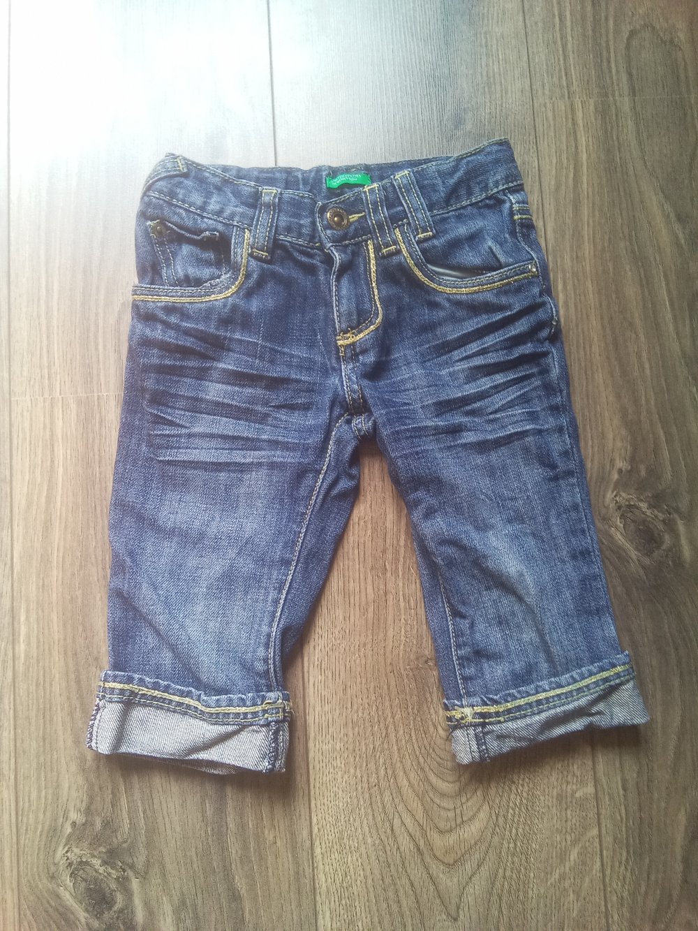 #sverlimädchen #sverli104 #sverli104m #unitedcolorsofbenetton #unitedcoloursofbenetton #bennetton #hose #hoselurz #kurzehose #jeans #shorts #blau #gold #sommer #uni #weitenregulation #weitenregulierbar #capri #caprihose