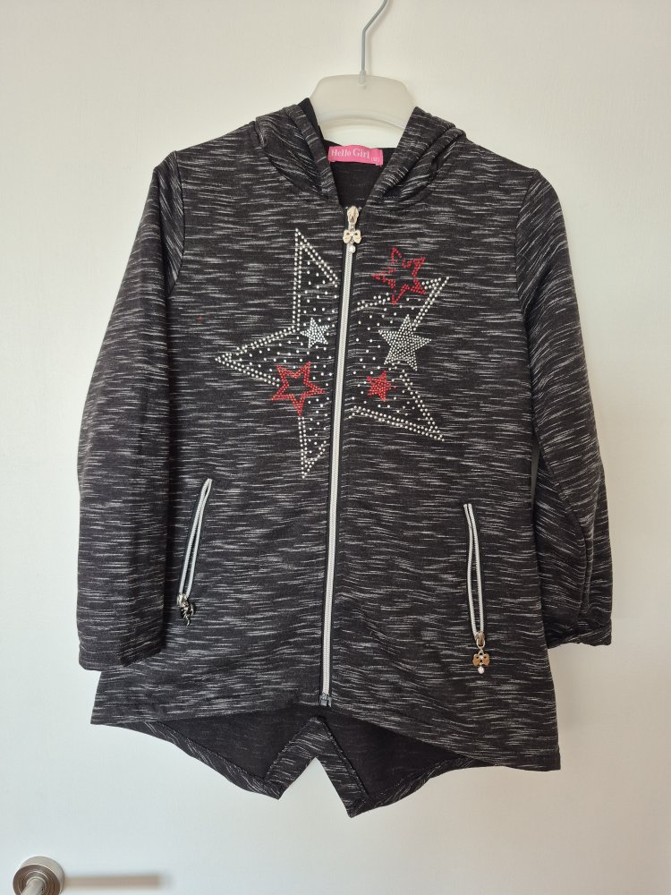 Hello Girl: grau melierte Zipfelstrickjacke mit Sternen Gr. 134