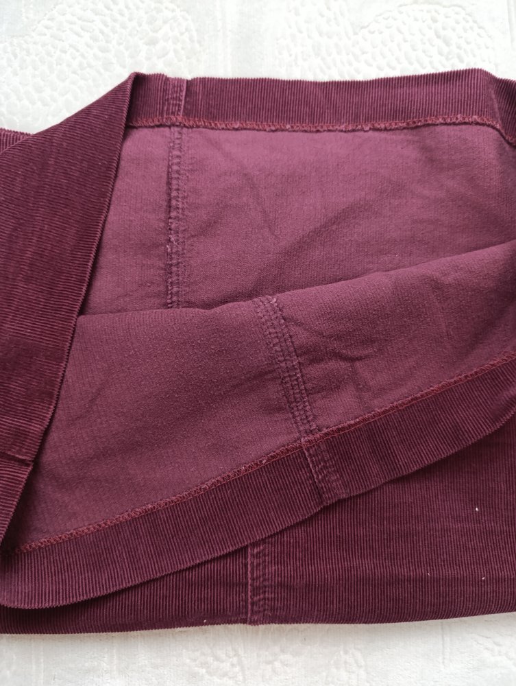 Zum Verkauf steht ein wunderschöner, knielanger Cordrock von H&M L.O.G.G. in einem tiefen, satten Bordeaux-Ton (oder Beeren-Ton).