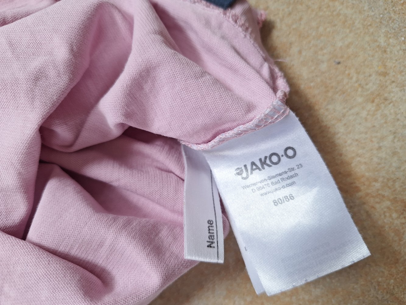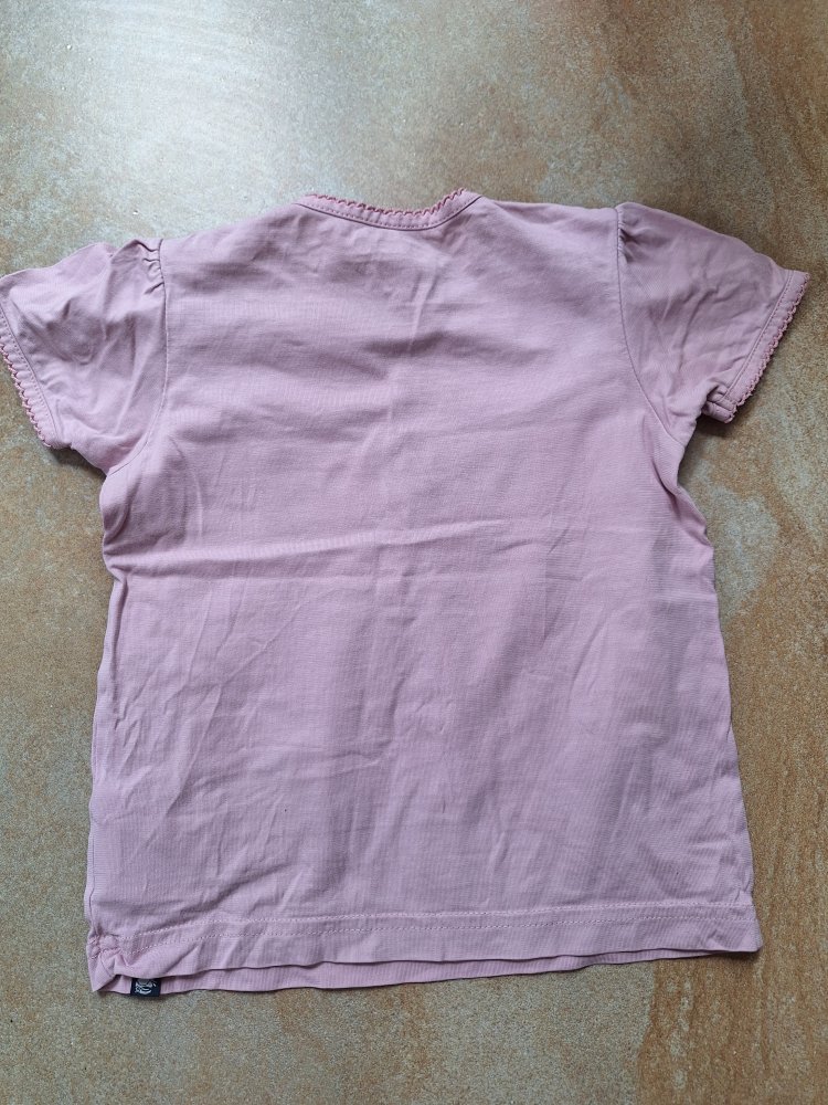 Schönes rosafarbenes T-Shirt in Gr. 80/86 aus 100 % Baumwolle. Am Halsausschnitt befinden sich auf jeder Seite zwei praktische Druckknöpfe, um das Shirt leichter über den Kopf an- und auszuziehen.