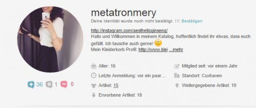 AestheticGinseng Stadt : Cuxhaven - Deutschland Letzte Aktivität : 29.04.2015 Mitglied seit : 05.03.2015 Besucher : 9769