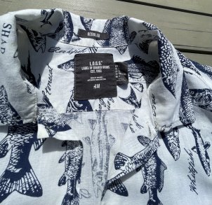 H&M Kurzarm HEMD Leinenhemd Resort Hemd „FISCHE“ Gr. L
