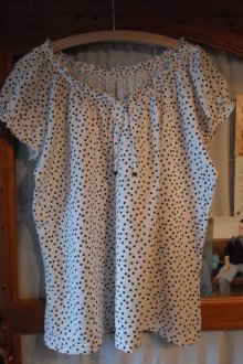 Damen Carmen Shirt Gr. XL 44 46 48 weiß mit schwarze Punkte