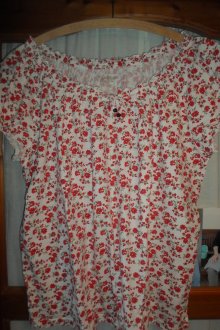 Damen Carmen Shirt Gr. XL 44 46 48 weiß mit roten Blüten