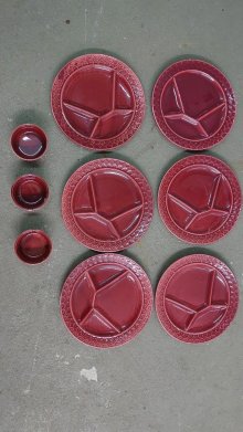 Fondue Teller Tonteller Vintage 6 Fondue Teller und 3 kleine Tonschüssel