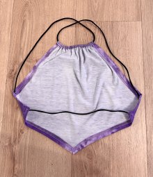 Sexy Stehkragen geripptes Baumwoll T-Shirt mit Cut-Out in Flieder Y2K XS/34