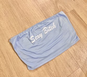 Sexy Damen einzigartiges Schriftzug Bandeau trägerloses Tube bauchfreies Crop Top Hellblau XS