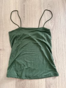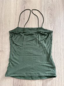 Sexy Damen Basic Spaghettiträger Top gerader Ausschnitt Khaki Armeegrün Y2K XS/S