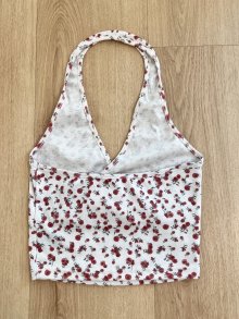 Sexy Damen geblümtes Neckholder ditsy flower Y2K bauchfreies Camisole Crop Top Weiß Spitze XS