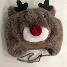 Baby Kinder Mädchen Jungen Mütze Weihnachten Weihnachtsmütze im Rudolph-Design setzt auf wärmende Ohrenklappen und ein appliziertes Geweih Gefüttert Rentier Winter Gr. 62