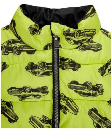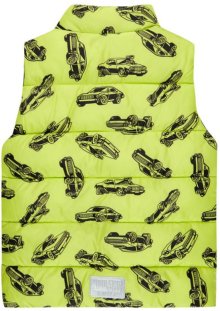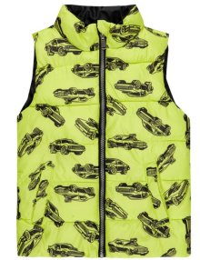 Jungen Kinder Weste Steppweste Autos Fahrzeuge Reißverschluss Grün Gelb Gr. 122