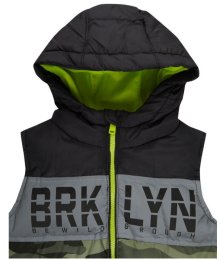 Jungen Kinder Weste Steppweste Camouflage Armee Kapuze Reißverschluss Grün Khaki Gr. 110