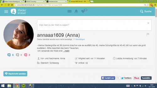 Annaisthedoctor Stadt : Schleswig - Deutschland Letzte Aktivität : 17.11.2014 Mitglied seit : 26.10.2014 Besucher : 8816