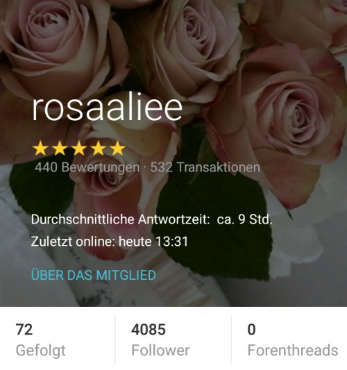 Rosaaliee Stadt : Berlin - Deutschland Letzte Aktivität : 20.11.2016 Mitglied seit : 24.11.2014 Besucher : 16439