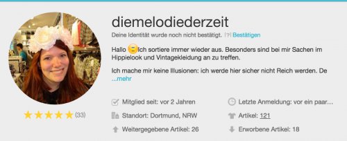 Ich verkaufe unter DieMelodieDerZeit auf Kleiderkreisel. Ich wollte jetzt einmal sehen, was hier noch so geht. Hoffe wir schreiben uns.